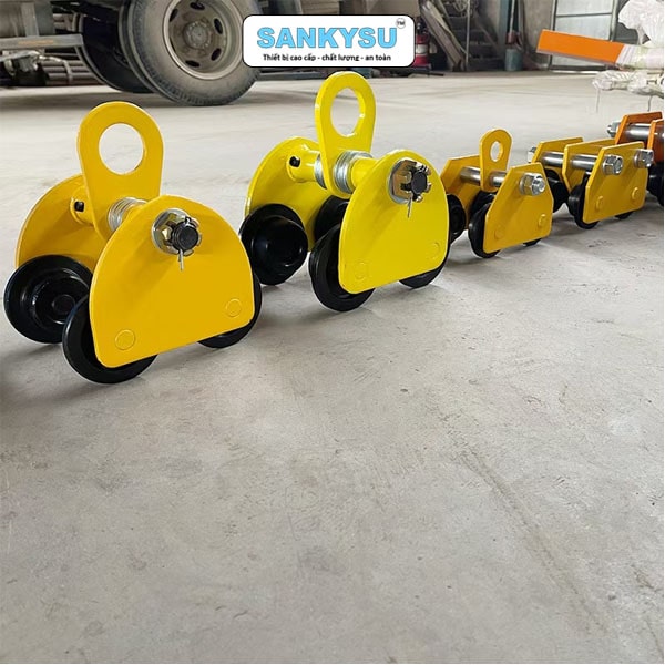 | Bánh xe thép chịu lực | 4 bánh xe có vòng bi, chạy mượt trên dầm I/H, không kẹt, không mài mòn nhanh |
