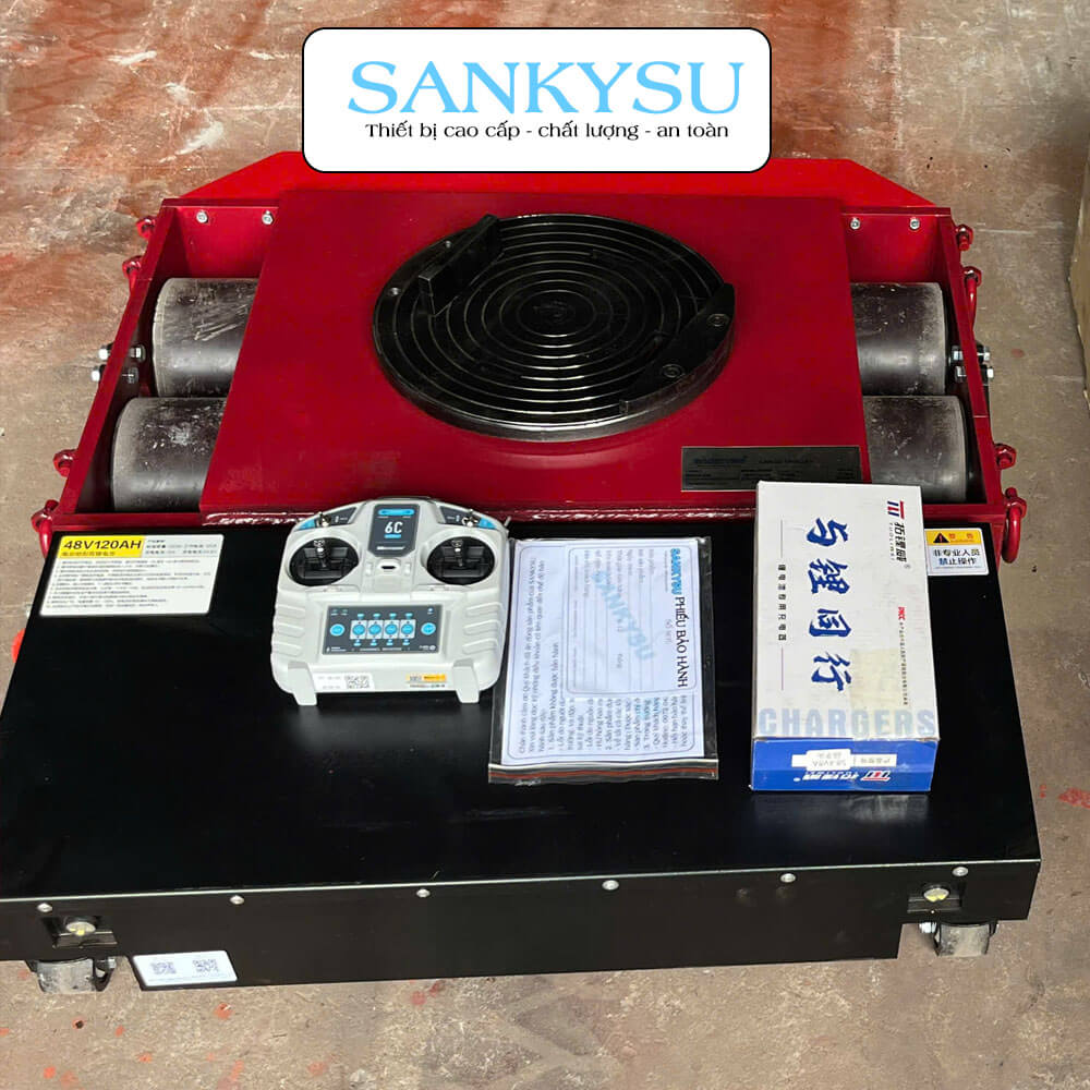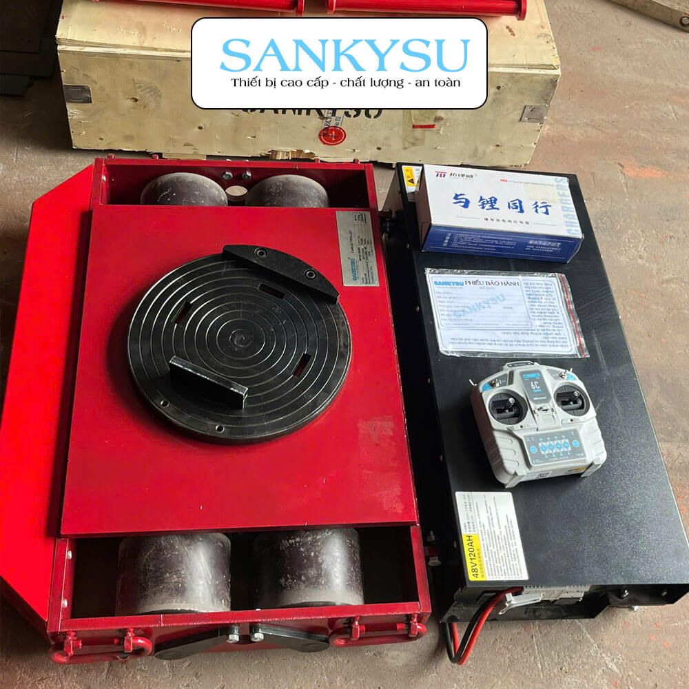 Con rùa chuyển hàng chạy điện SANKYSU 20 tấn là thiết bị chuyên dụng dùng để di chuyển máy móc, thiết bị công nghiệp có tải trọng lớn trong nhà xưởng, kho bãi và công trình cơ khí. Sản phẩm vận hành bằng điện, điều khiển từ xa linh hoạt, giúp giảm sức lao động thủ công và nâng cao độ an toàn trong quá trình làm việc.