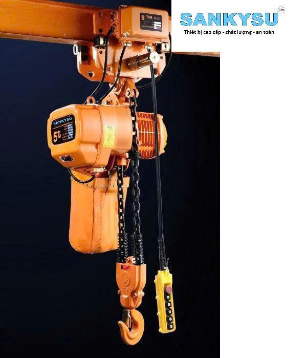 - Pa lăng xích điện di chuyển 5 tấn SANKYSU KKBB05-02 380V là thiết bị nâng hạ công nghiệp chuyên dùng để nâng và di chuyển vật nặng trong nhà xưởng, kho bãi và công trình xây dựng. Với tải trọng nâng lên đến 5000kg, sản phẩm mang lại khả năng vận hành mạnh mẽ, ổn định và an toàn trong quá trình làm việc.