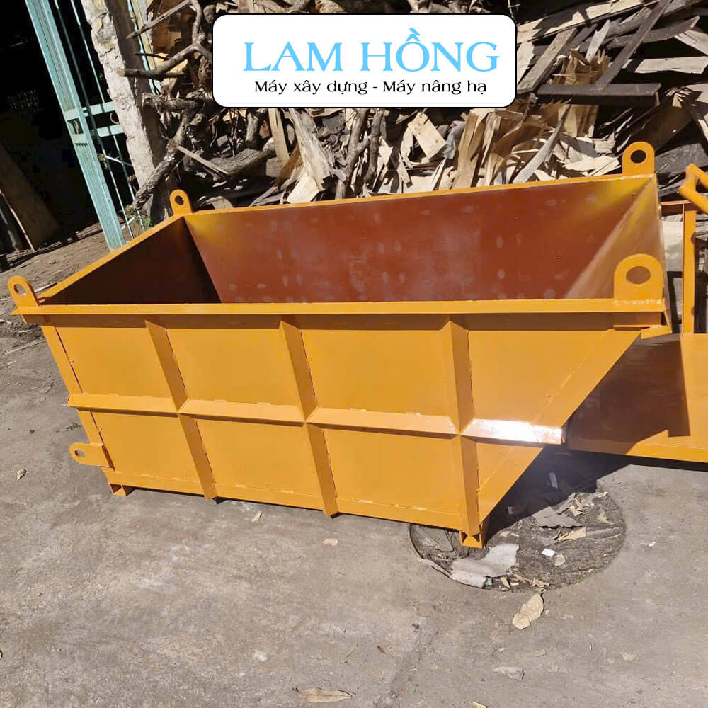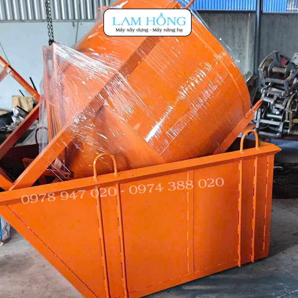 Với dung tích 1m³ (1000 lít), sản phẩm cho phép vận chuyển khối lượng vật liệu lớn trong mỗi lần nâng, giúp tăng hiệu quả thi công và giảm nhân công vận chuyển thủ công. Những loại phễu hoặc thùng chứa bê tông dung tích 1m³ thường được dùng trong nhiều công trình từ nhà dân dụng đến công trình công nghiệp nhờ khả năng vận chuyển bê tông và vật liệu nhanh chóng.